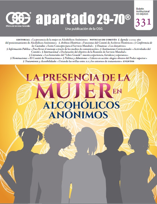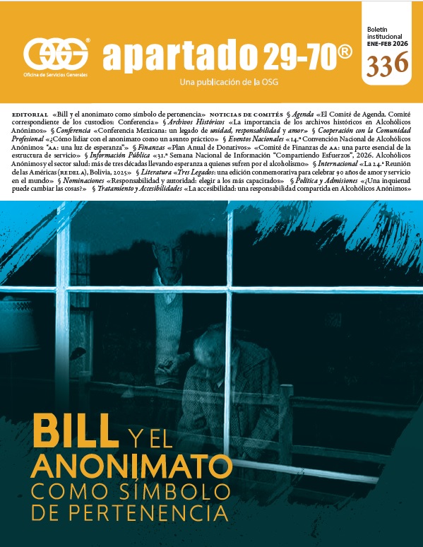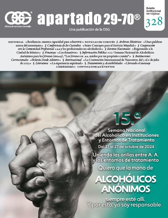 En apego a nuestra tradición del anonimato, en esta publicación se han eliminado o editado las imágenes y los nombres completos de los miembros de la comunidad de Alcohólicos Anónimos, por lo que los rostros legibles y nombres completos aquí publicados corresponden a personas que no padecen la enfermedad del alcoholismo.
