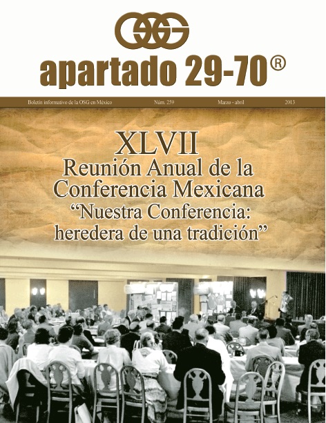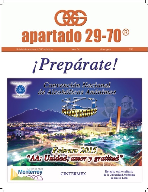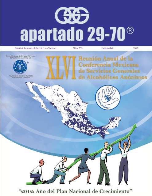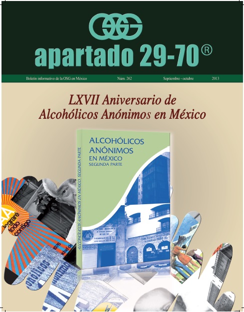 Boletín apartado 29-70 es un órgano de información y servicio a la comunidad de Alcohólicos Anónimos, publicado cada dos meses por la O.S.G. de México. Se distribuye gratuitamente a todos los grupos de Alcohólicos Anónimos que se encuentran registrados en la Central Mexicana de Servicios Generales de Alcohólicos Anónimos, A.C. Si deseas obtener una suscripción personal por un año ponte en contacto con la O.S.G.